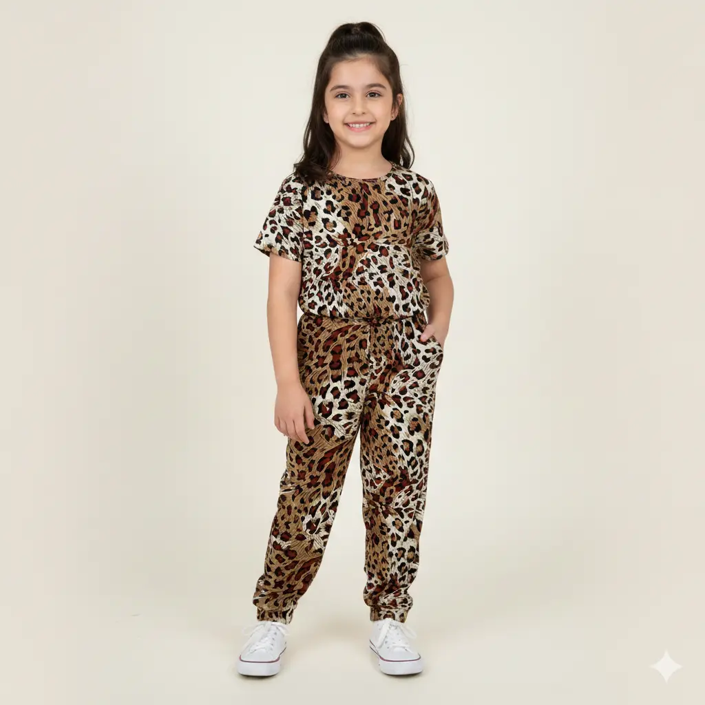 This fierce and fashionable ensemble brings the allure of the jungle to your little fashionista’s wardrobe. Adorned with captivating spots and designed for comfort, this jumpsuit is the perfect blend of adventurous and trendy.