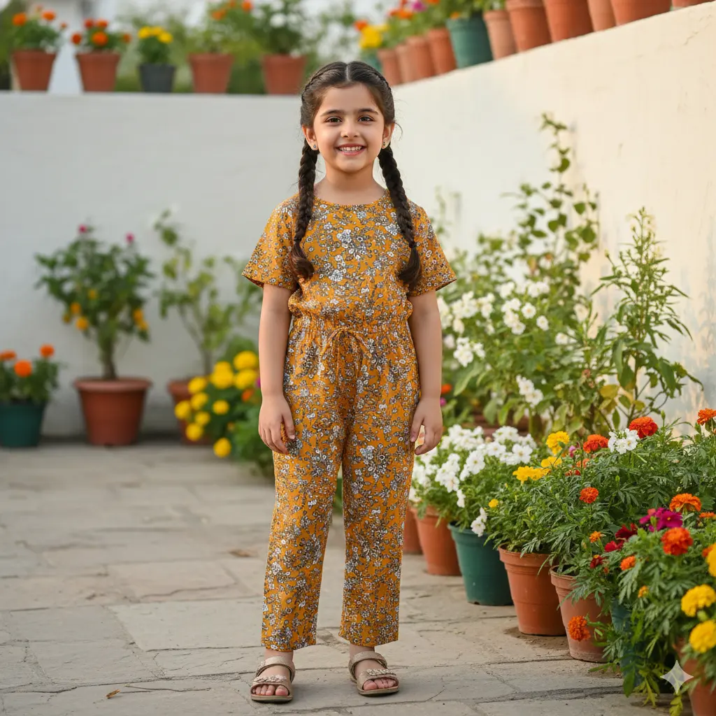 Crafted for comfort and designed to make a statement, this jumpsuit is the perfect choice for a vibrant and stylish wardrobe. Let her radiate joy and elegance in this charming piece.